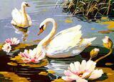 «Белые лебеди на озере с лилиями»